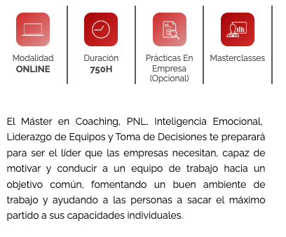 Este máster está pensado para profesionales de RRHH, emprendedores, líderes de equipo, formadores o cualquier persona que desee mejorar su capacidad de liderazgo, comunicación y gestión emocional en entornos profesionales.