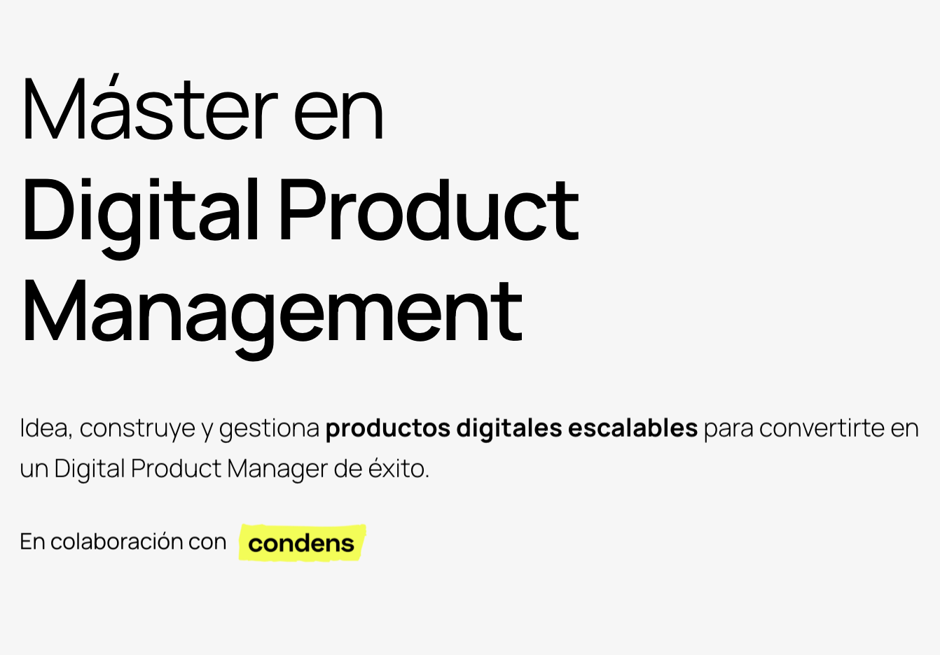 Máster en Digital Product Management de Nuclio Digital School: una formación práctica y estratégica para aprender a idear, construir y gestionar productos digitales escalables. Disponible en formato online y también presencial en Barcelona y Madrid.