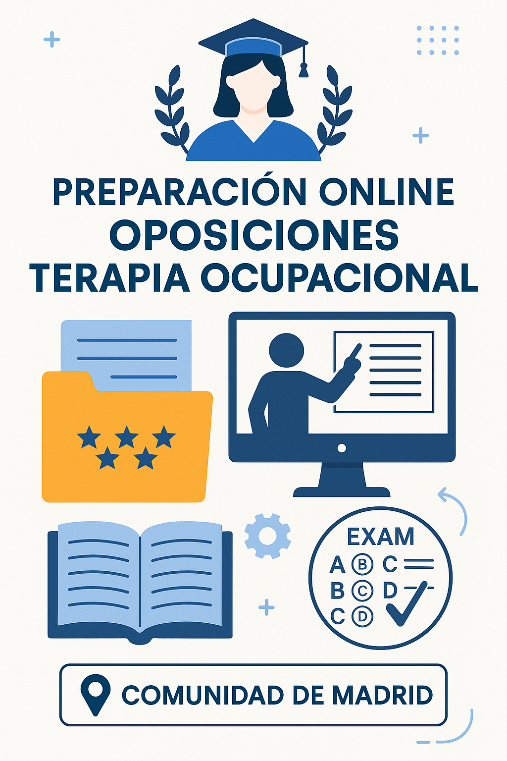 Prepárate para las oposiciones de Terapia Ocupacional (Grupo A, Subgrupo A2) de la Comunidad de Madrid con una preparación online orientada a resultados. Trabajaremos estrategia de estudio, técnica de examen y dominio práctico del programa oficial para maximizar tu puntuación en cada ejercicio.